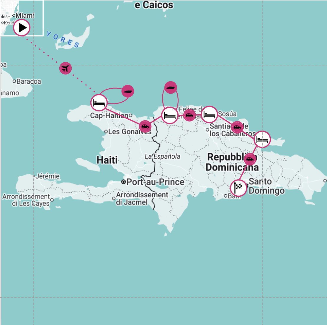 Due mondi vicini ma radicalmente diversi, nell’isola di Hispaniola, la prima terra emersa delle Indie dove Cristoforo Colombo mise piede. Dal Nord di Haiti, tra fortezze montane, rovine coloniali e isole selvagge del Mar dei Caraibi, fino alla costa nord della Repubblica Dominicana, tra parchi naturali, canyon, cascate e trekking sul mare. Un viaggio che mescola storia, natura tropicale e logistica unica, tra strade remote, frontiere di terra e piccoli porti. Dalle alture di Cap-Haïtien al cuore di Santo Domingo, attraversando isole, fiumi e penisole immerse nella giungla