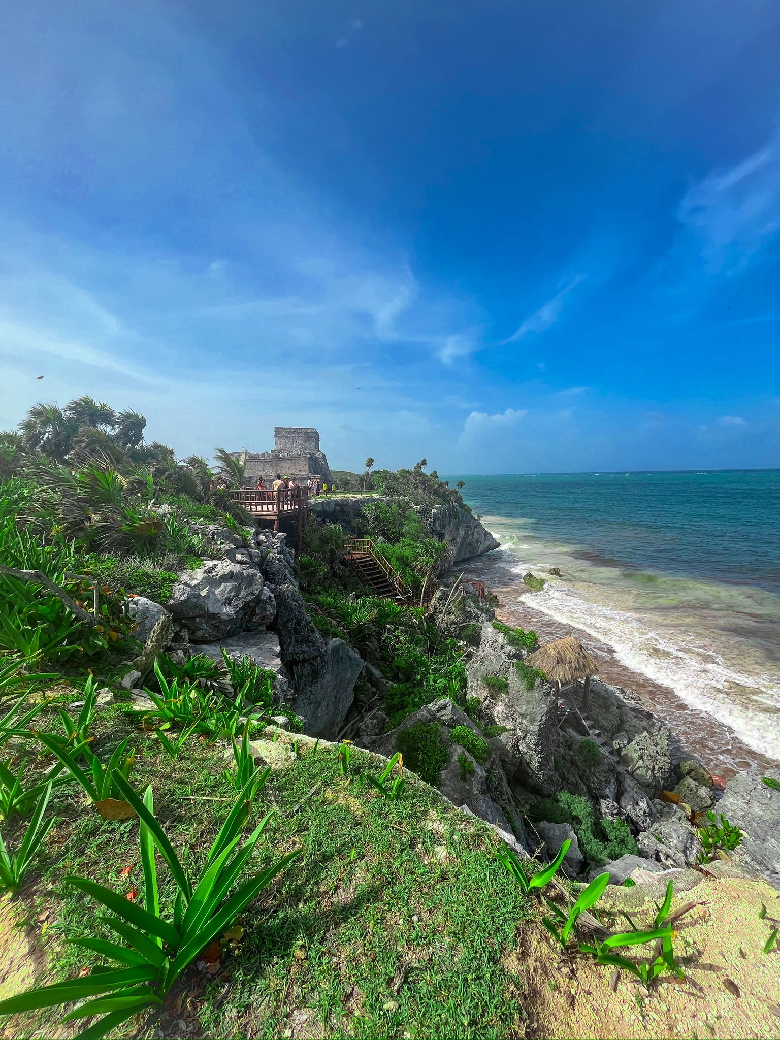 Mattina: Partenza verso Tulum attraversando la parte meridionale della penisola. Lungo il tragitto si percepisce il passaggio da un Messico più rurale e tranquillo a una zona più dinamica e turisticamente sviluppata. Arrivo a Tulum e visita approfondita del sito archeologico, uno dei pochi centri maya costruiti direttamente sulla costa. Le rovine si affacciano su una scogliera calcarea che domina il mare turchese, creando uno dei panorami più iconici dell’intera Mesoamerica..