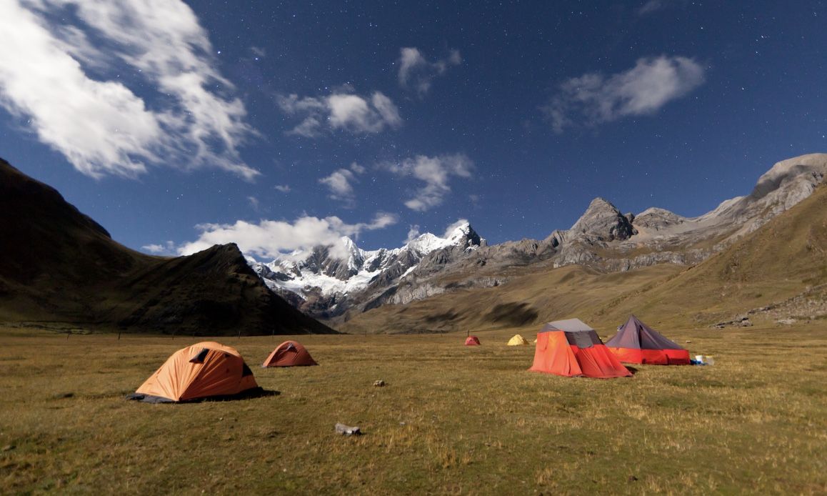 Sera: campo sulle rive della laguna, uno dei momenti più intensi e fotografici del trekking. Cena e pernottamento a camp Jahuacocha