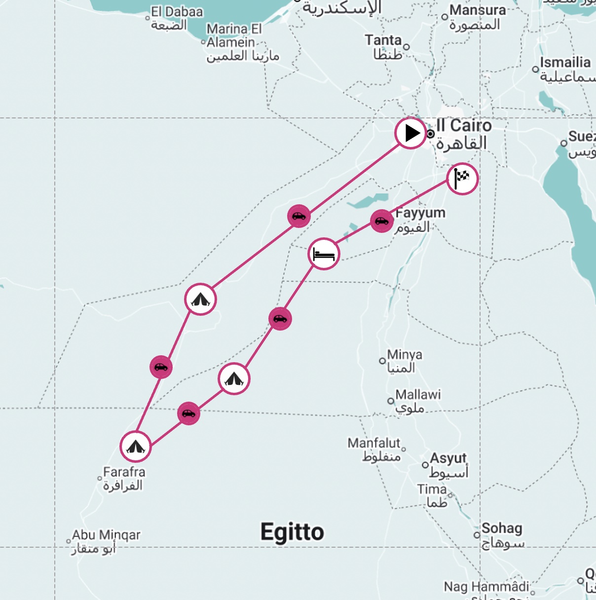 Mattina e pomeriggio: colazione e rientro al Cairo in minibus privato. Arrivo e sistemazione in hotel. Tempo libero per riposo o esplorazione individuale