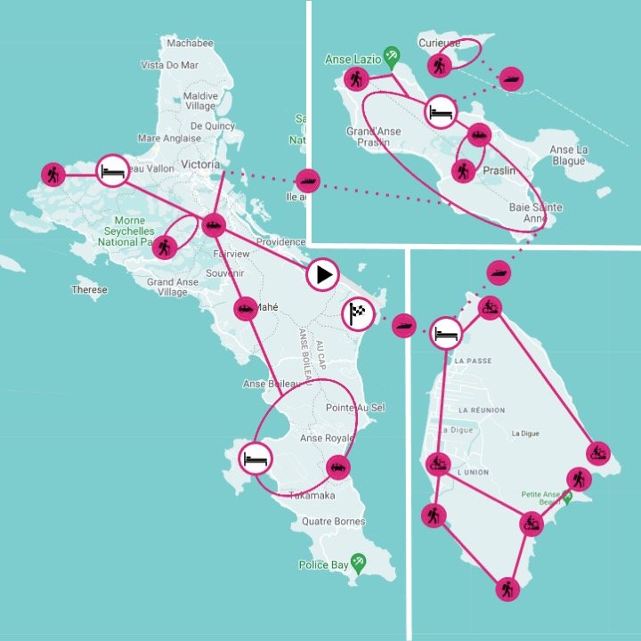 A La Digue, ultima isola del nostro viaggio, in sella alle bici andremo alla scoperta delle spiagge più belle del mondo, come la celebre Anse Source d’Argent. Ma non ci basta: saremo infatti tra le pochissime persone ad avventurarsi a Anse Marron, il vero gioiello della corona dell’arcipelago. Sarà un trek duro, con guida locale, tra fitte foreste di mangrovie, arrampicate, trek in mare e tratte a nuoto: ma lo spettacolo finale vi lascerà senza parole!